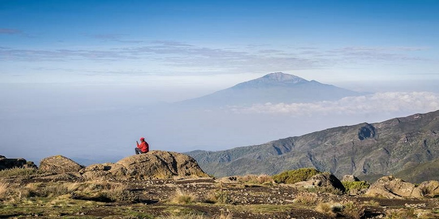 In the morning you will follow wooden steps along a steep track. Due to the gain in altitude, it will be noticeably cooler than the previous day and walking may seem easier. The clouds often hang low in the rainforest, creating a moody atmosphere in the lush vegetation. After going uphill for approximately 2 hours, you will reach the vantage point “Mgongo wa Tembo” (elephant back) at a height of 3,200 m, where you will enjoy a well-earned break. The vegetation now changes from rainforest to heather and moorland and you should reach Saddle Hut (3,550 m) at around midday. During the afternoon, you have the option to hike to Little Meru (3,820 m) which should take about 1 to 1½ hours. From here you will enjoy wonderful views of Arusha National Park and Mt Kilimanjaro about 80 km away. Back at Saddle Hut you will have a warm meal before you retire to bed early as your wake-up call with be just after midnight.